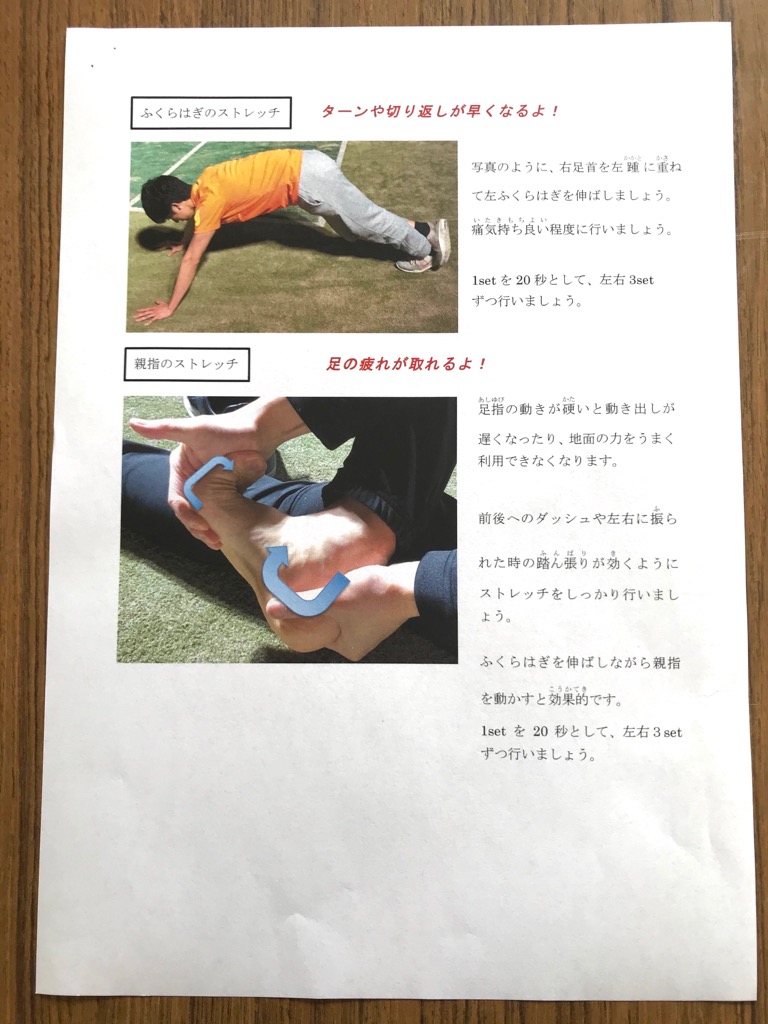 家では先日紹介したストレッチ、体幹トレーニングを行うようにしていきましょう。