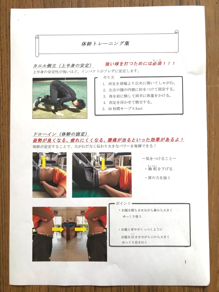 体幹トレーニング①~④をやってみよう。